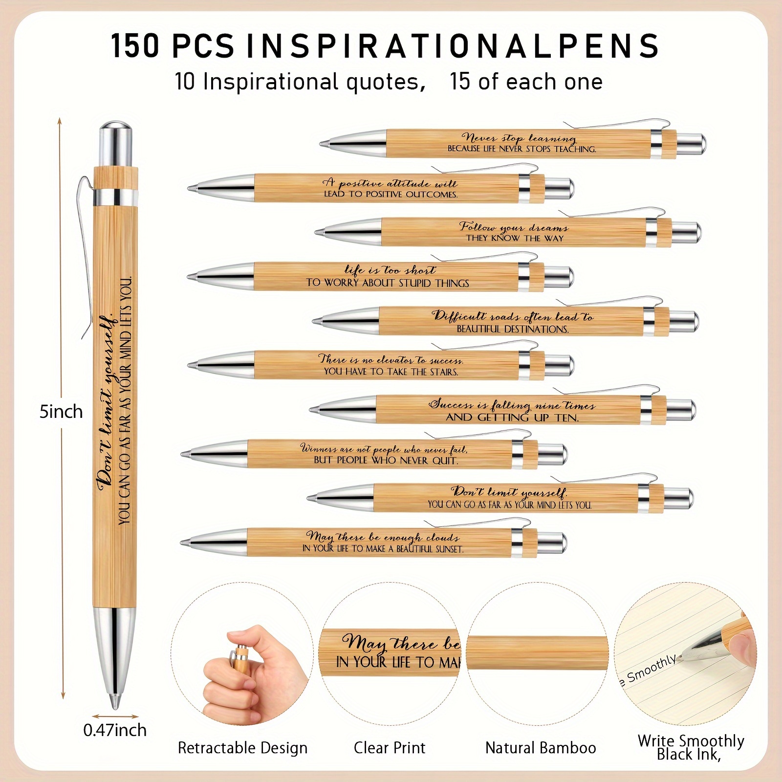 150-Set Inspirational Journal Bundle – Spiral Notebooks, Sticky Notepads, Motivational Bamboo Ballpoint Pens – Perfect Back to School Gift, Teacher Appreciation, Employee Recognition, and Coworker Thank You Present