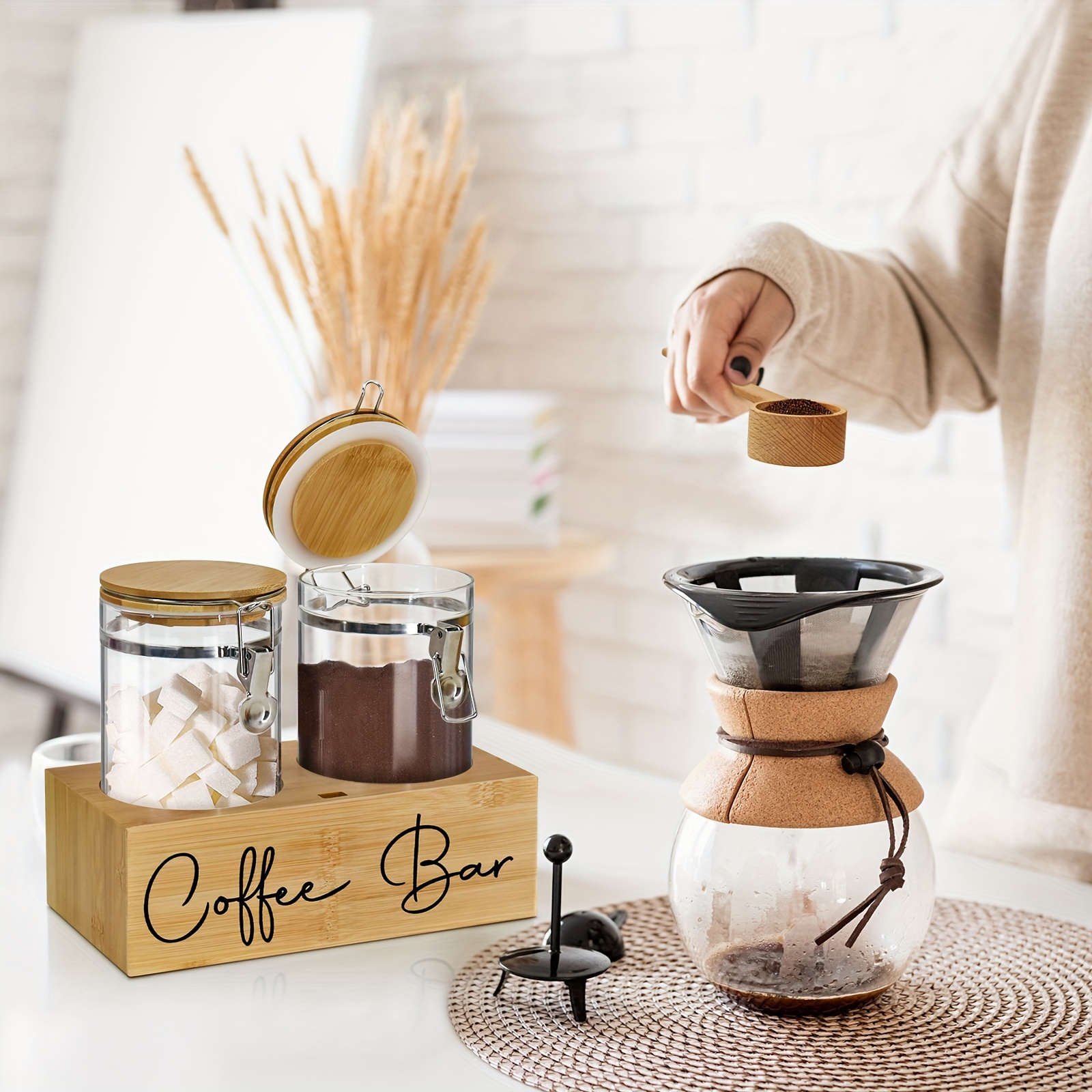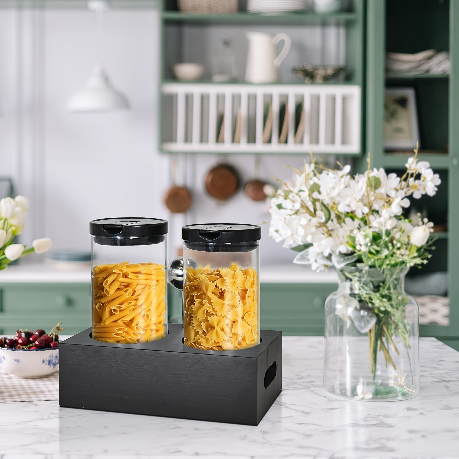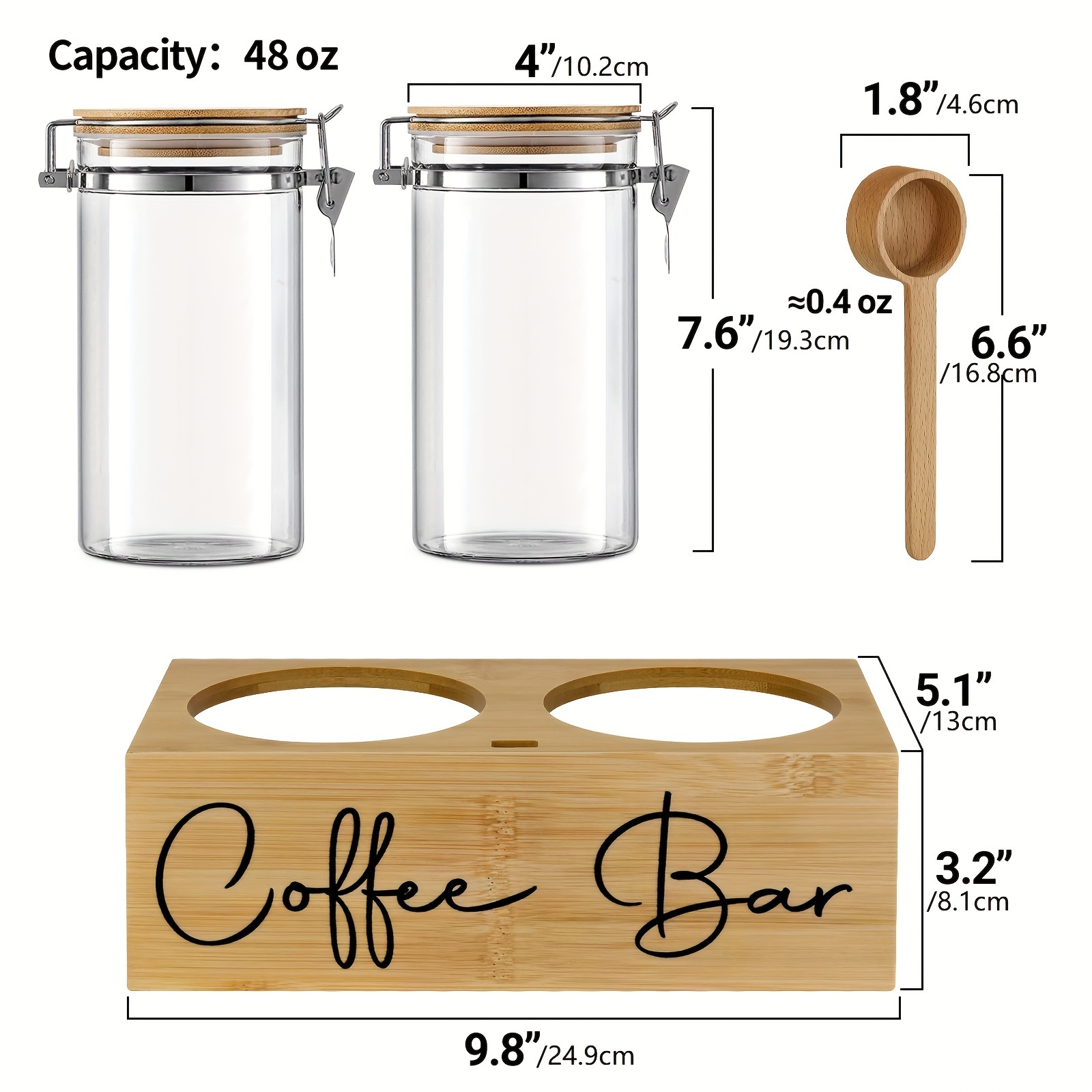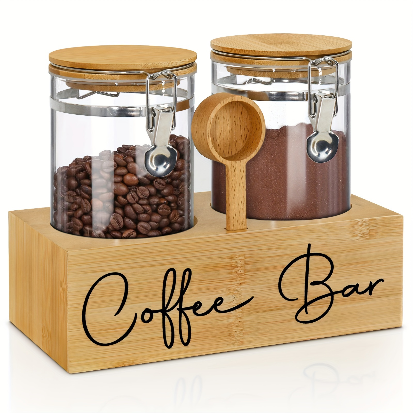 2x48oz Airtight Glass Coffee Canister Set – Sturdy Coffee Storage Container with Shelf, Lids, and Scoop for Fresh Ground Coffee Beans – Kitchen Food Storage Jars with Easy Access and Visibility
